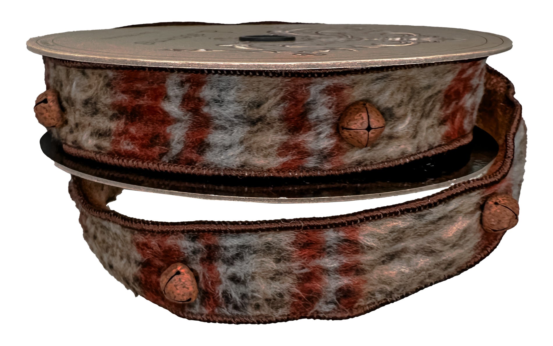 This plaid ribbon is trimmed with rust working jingle bells - now isn't that just a good Chistmasy time or what?!? Earthen tones with a kiss of slate make this a statement ribbon to add to any design you need: a little rustic, a little western or a lot fun.
